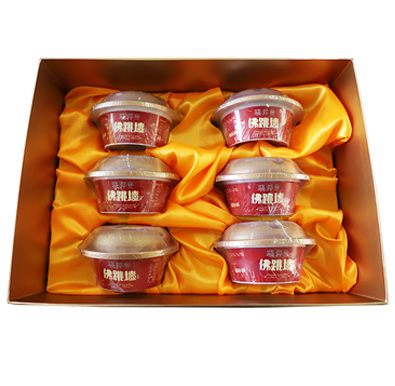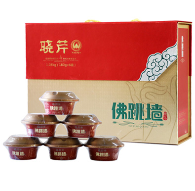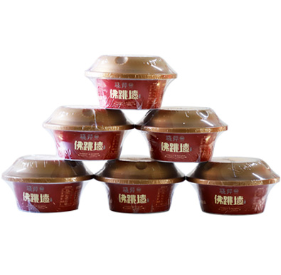 除大連海參外,將鮑魚(yú)、花膠、裙邊、螺片、干貝、蹄筋、花菇這些珍貴的食材,經(jīng)科學(xué)配比,再與精心熬制的高湯融合,制作成開(kāi)袋加熱即食的佛跳墻。